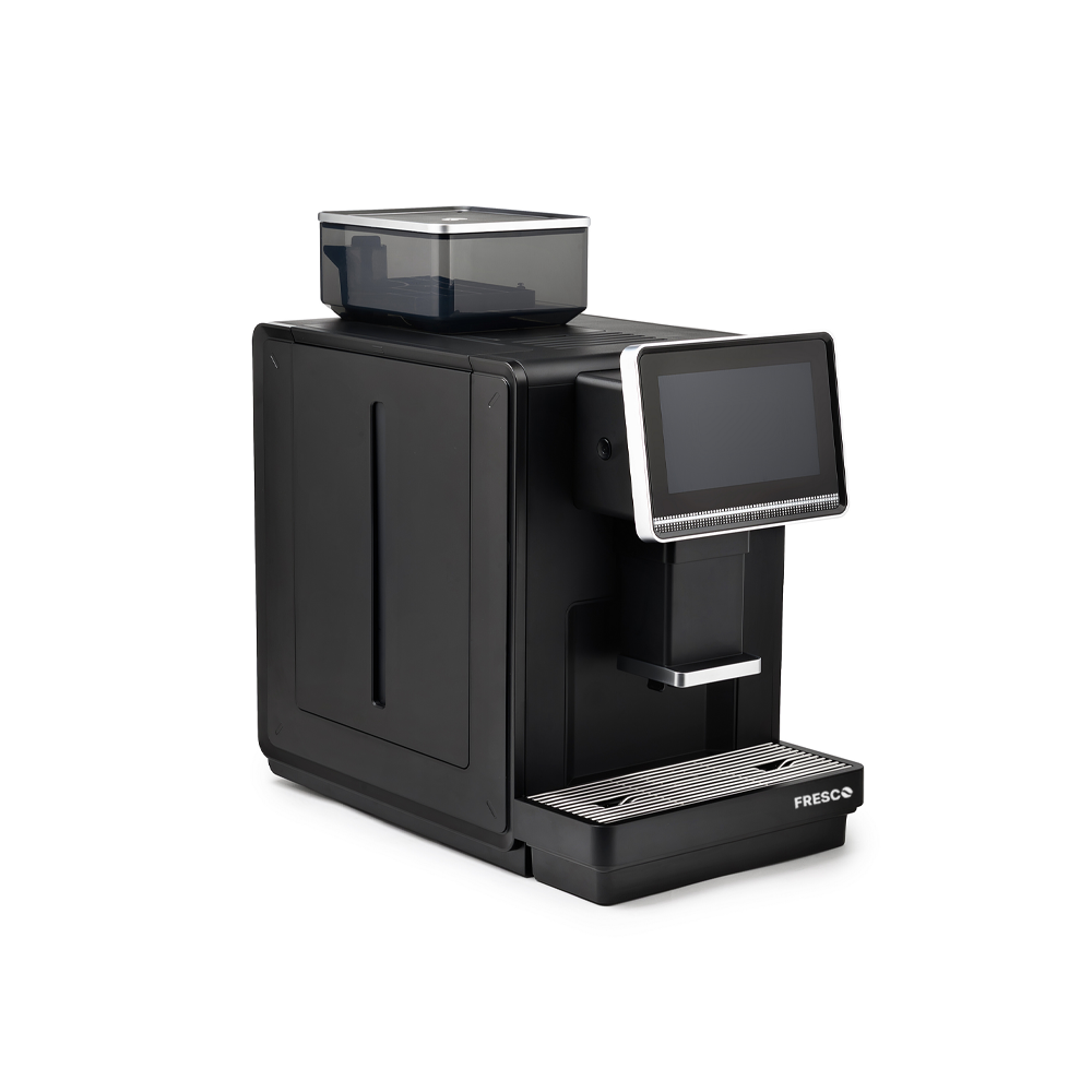Fresco X40 to zgrabny i nowoczesny ekspres, który z łatwością wpasuje się w każde wnętrze. Spokojnie przygotuje około 30 kaw dziennie, więc to świetny wybór do mniejszego biura, punktu usługowego czy kameralnego hotelu.