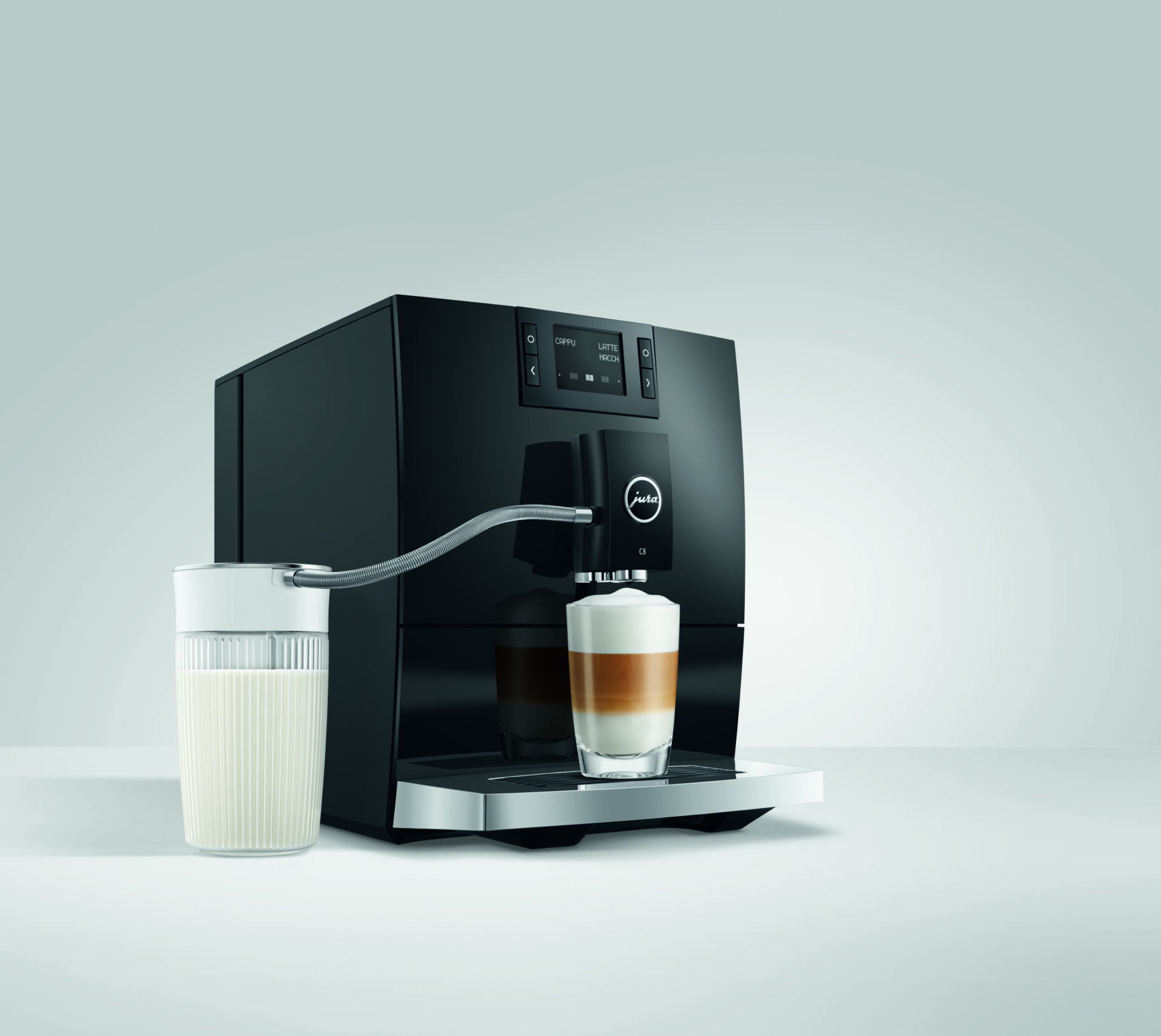 Model C8 reprezentuje nowy segment premium economy firmy JURA. Kompaktowy ekspres, który zapewnia maksymalną wydajność, zaprojektowany i wyposażony w elementy charakterystyczne dla segmentu premium, serwujący niezapomniane doznania kawowe.